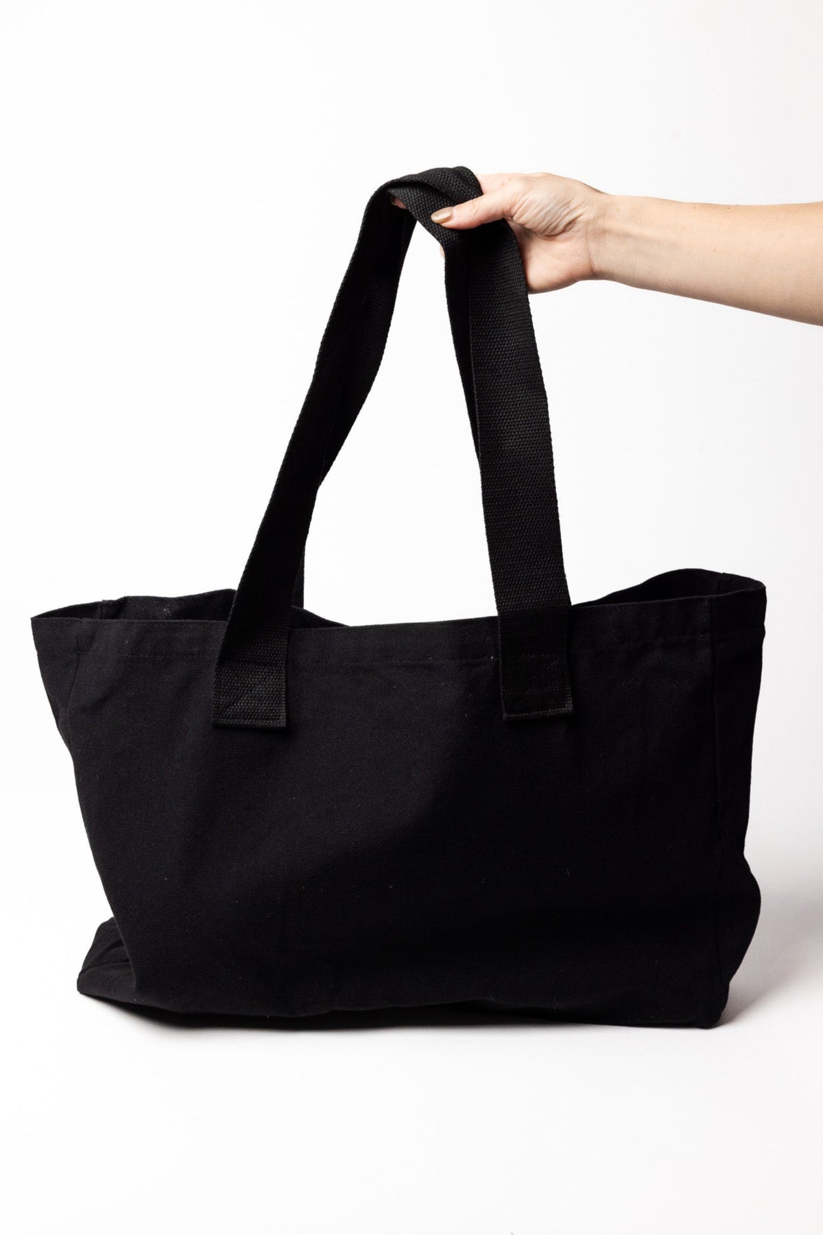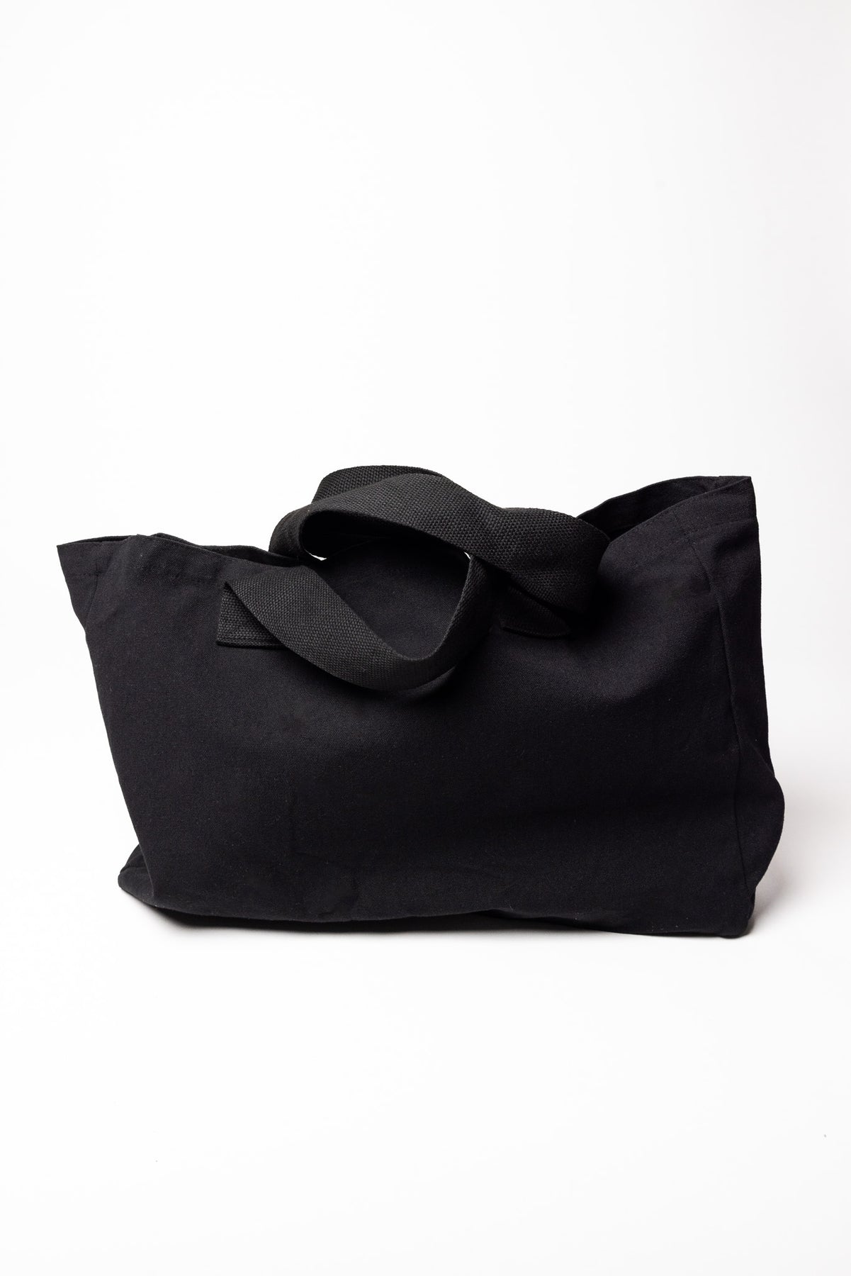 Black cotton blend tote.
